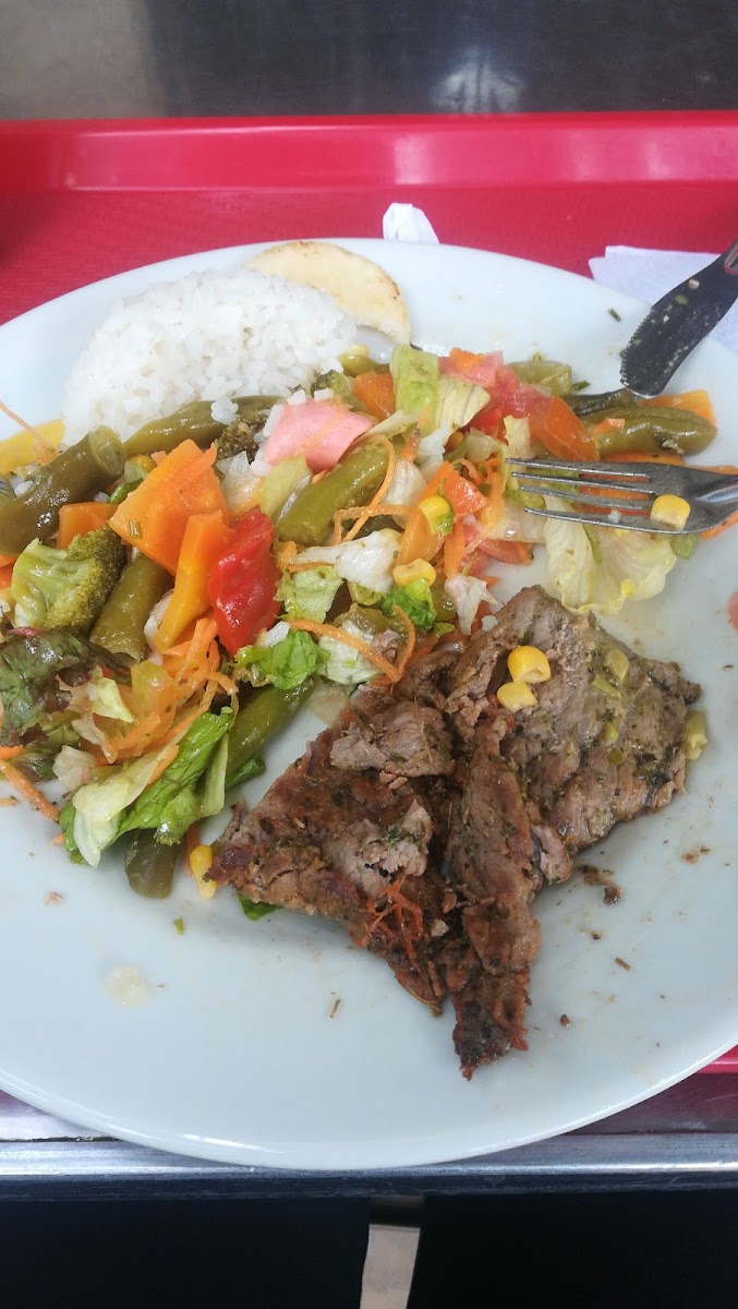 The atmosphere is straightforward and unpretentious, focused on efficiency without sacrificing a touch of comfort. You’ll find a variety of meal options displayed at the food bar, reflecting a local taste for familiar, homemade flavors rather than elaborate dishes. Among these, the carne asada with steamed vegetables stands out as a plate that feels both hearty and balanced, suitable for those who want a substantial yet comforting lunch.
